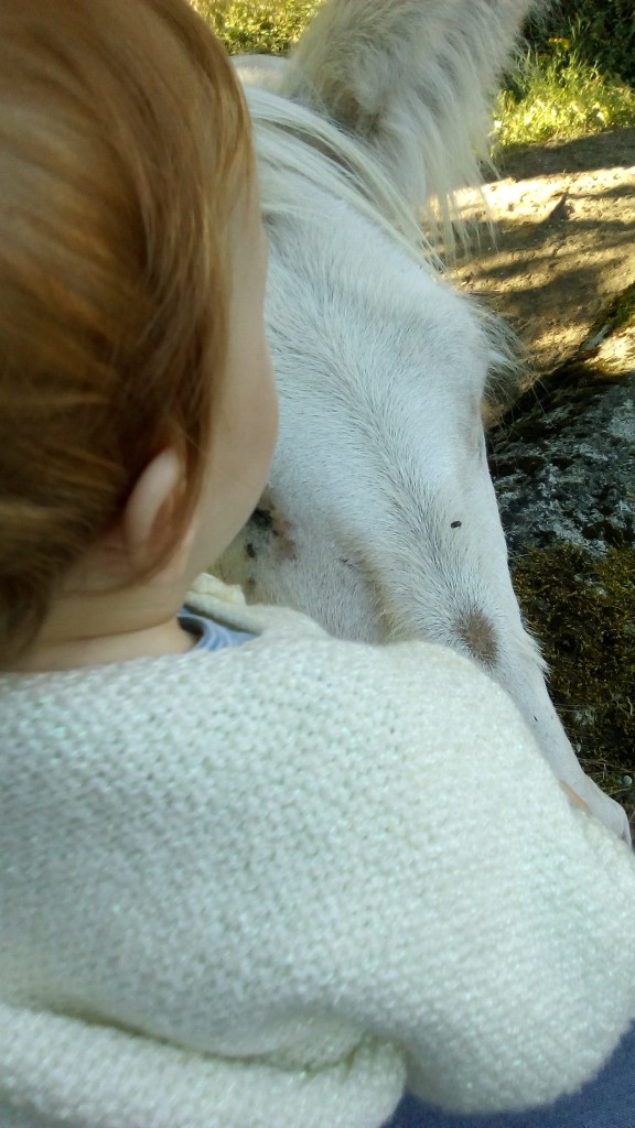 Voici les seules photos que j’ai de Maxine lors de sa toute première rencontre avec un âne…