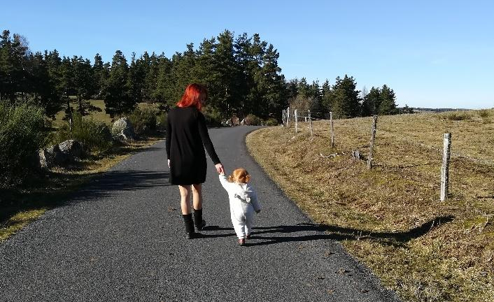 On a commencé par un super weekend toutes les deux chez ma mère parce qu’Arnaud travaillait. C’était génial. Quand on est chez ma mère on va faire de longues ballades, on boit le café chez plein de gens sur le chemin, on court dans le jardin, on mange que des bons trucs, on fait des câlins devant la cheminée, on danse avec la musique à fond, on rigole comme des folles, Maxine fait du yoga avec sa mamie, je peux faire des grasses matinées, voir mes copains de jeunesse.