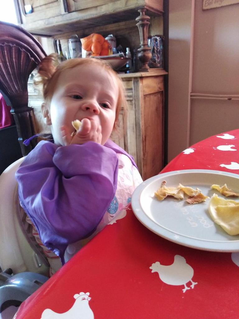 - Pendant que je faisais la vaisselle elle a ouvert le placard à épices, j’ai dit « NONMAXINETUSAISQUETASPASLEDROITDEJOUERAVECLESTRUCSDECEPLACARD! », elle m’a regardé droit dans les yeux et elle a ouvert et renversé le flacon d’Origan en disant « hooooo, bêtise partout partout ».