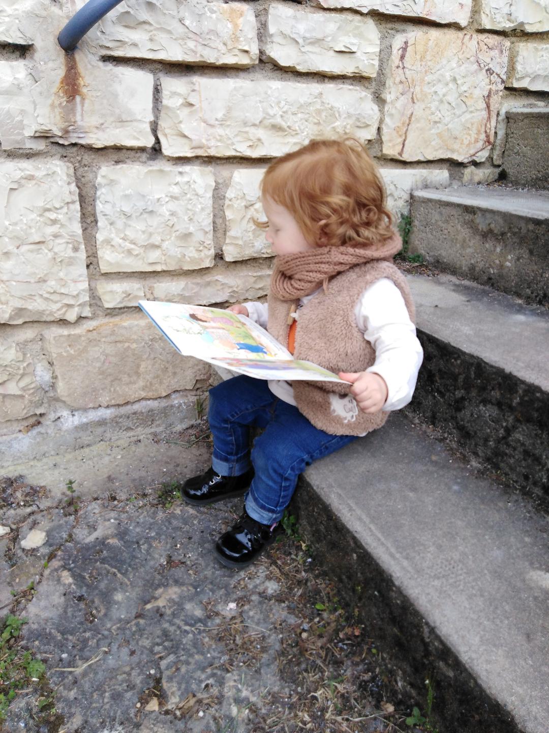 - Un moment elle jouait tranquille dans le salon, Arnaud et moi on était chacun sur un fauteuil, on faisait du sudoku, elle nous a regardé, elle est partie dans sa chambre et est revenue, en grognant tout ce qu’elle savait parce qu’elle était en galère, avec son petit fauteuil en mousse dans les bras, qu’elle est venu installer entre les deux nôtres. Et elle s’y est installée pour lire son Popi Magazine.