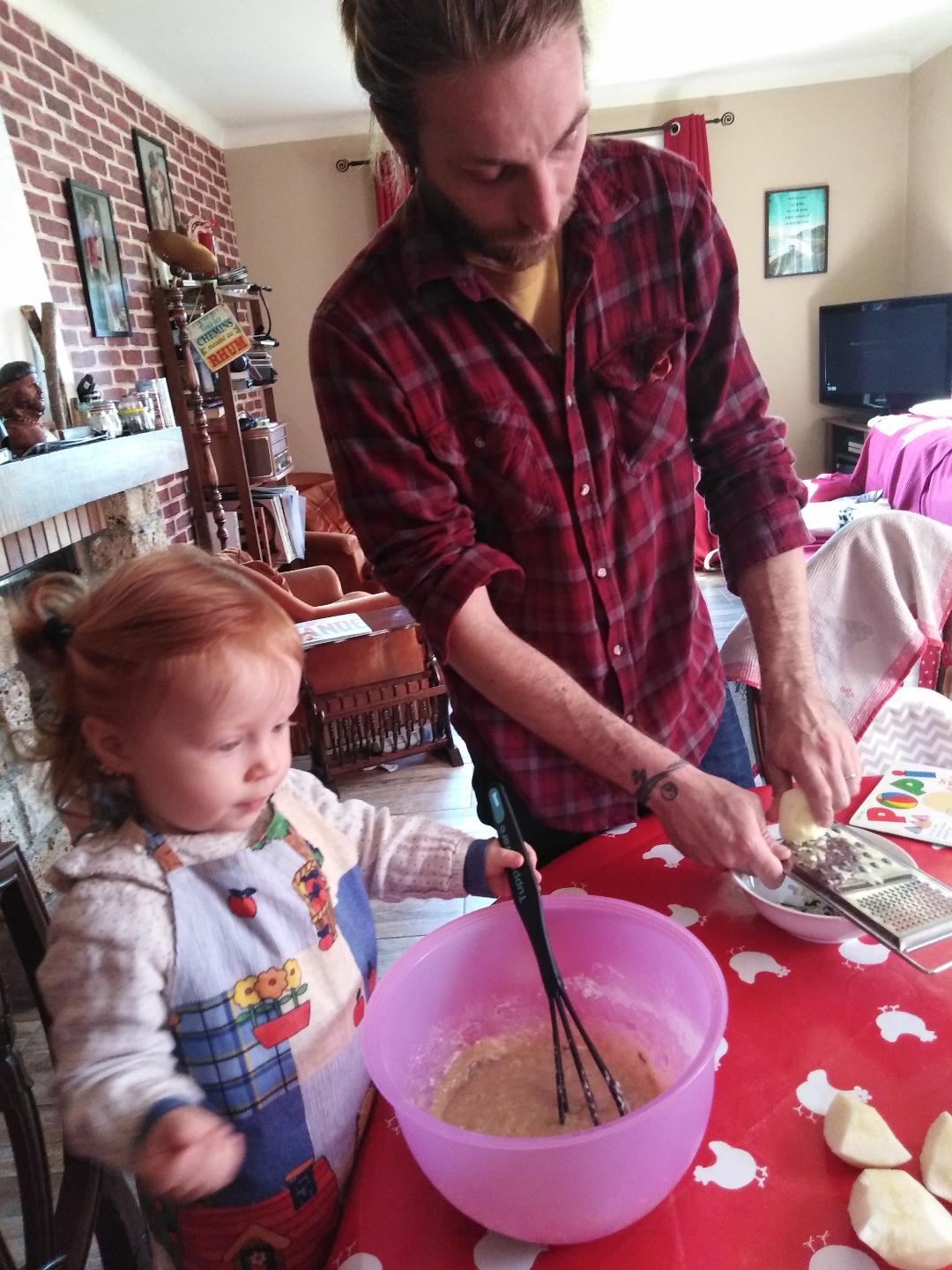 - Un cake pomme cannelle pour changer de celui à l’orange, réalisé à 6 mains. C’est mon nouveau préféré, il est trop bon. Je vous mets la recette.