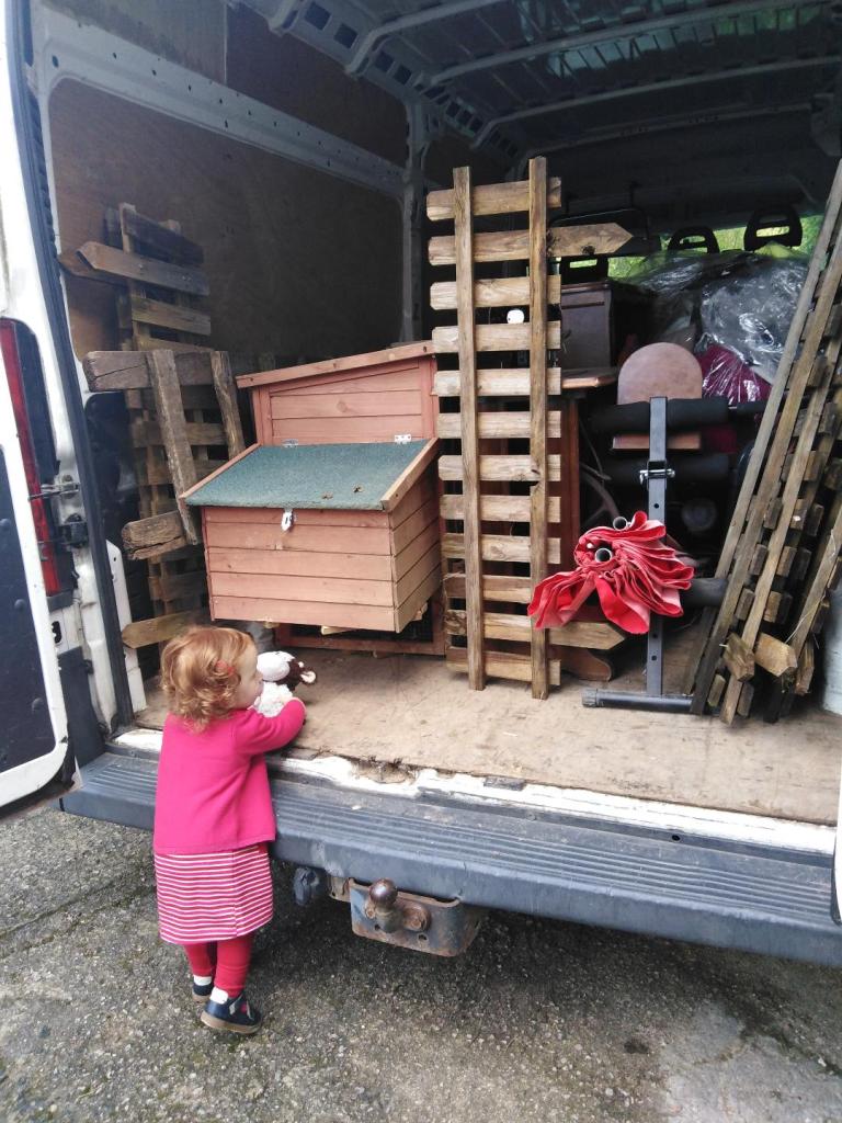 Alors cette semaine on a fait des cartons, des cartons et encore un peu plus de cartons et du coup jeudi on avait vraiment plus de place du tout pour stocker d’autres cartons. Du coup on a loué un camion et Arnaud a fait trois aller-retours en deux jours à la nouvelle maison pour tout amener.