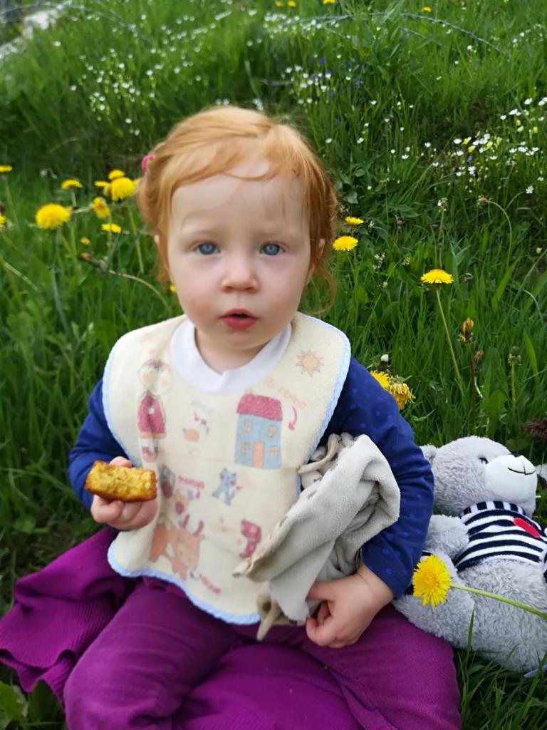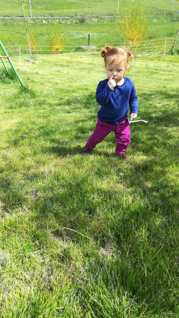 Pendant ce temps là, Maxine a fait du yoga, des promenades, lu des histoires, vu des chèvres et des vaches, fait des roulades, couru dans l’herbe et a fait deux siestes d’au moins une heure et demi par jour. Je vous jure qu’elle le fait exprès. Avec nous elle veut jamais rien savoir, avec sa grand mère c’est une marmotte. J’allais lui en vouloir et lui sucrer une partie de son héritage mais comme elle m’a cueilli un bouquet de fleurs dans le jardin de ma maman mon petit coeur a fondu et j’ai rien dit.