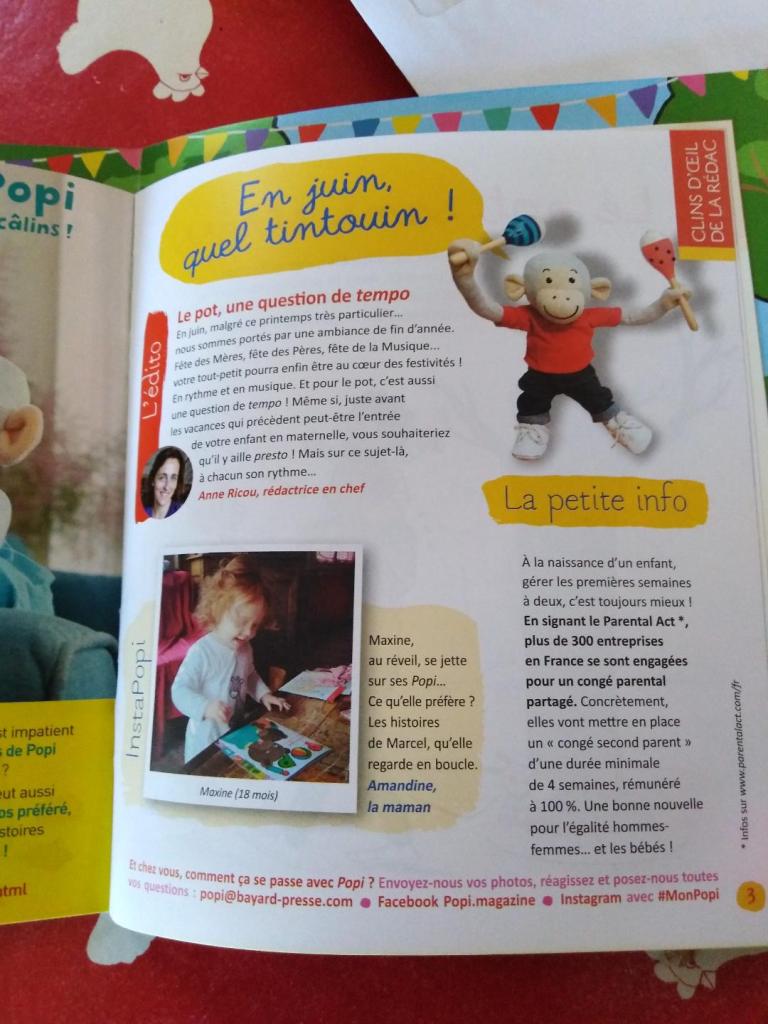 En rentrant on avait reçu Popi Magazine, Maxine était en photo dedans. J’étais encore plus mieux fière. Genre au top de la fierté maternelle.
