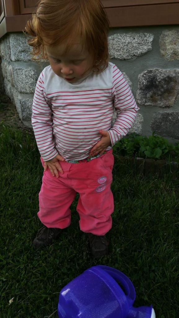 Elle a couru partout dans la maison en faisant « WOOOOOOOW », elle a transformé en cinq minutes chrono sa chambre de princesse en champ de bataille, elle a essayé tous les transats du jardin, elle a monté et descendu 1000 fois les escaliers de la terrasse, elle s’est cachée dans un placard du chalet où elle rentre en entier et a fait « coucou/caché/encore » 200 fois. Elle avait l’air hyper contente, il faisait beau, ses cheveux flamboyaient dans la lumière de fin d’après midi, Arnaud était assis à côté de moi, j’étais au top de ma vie.