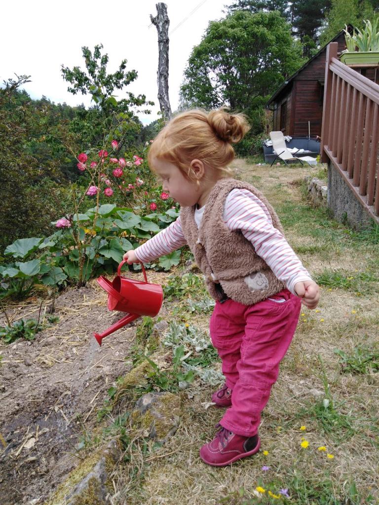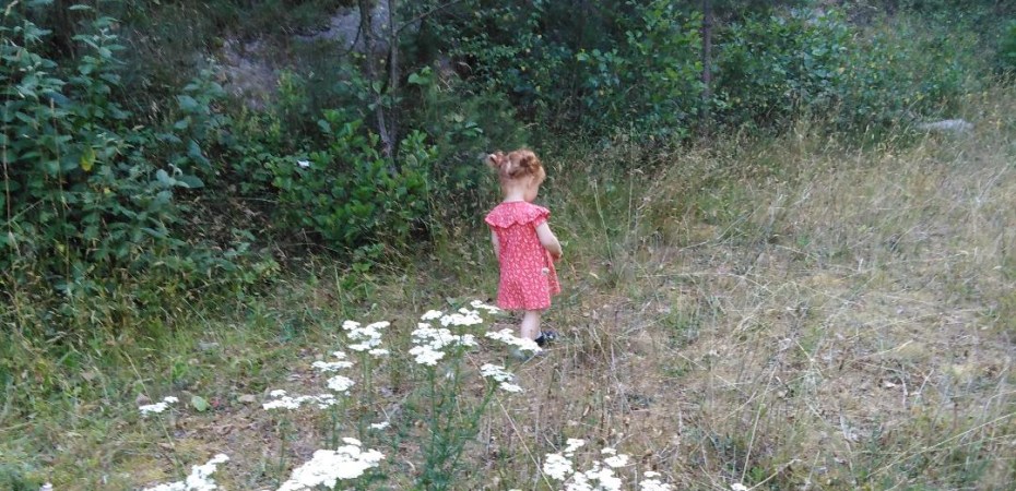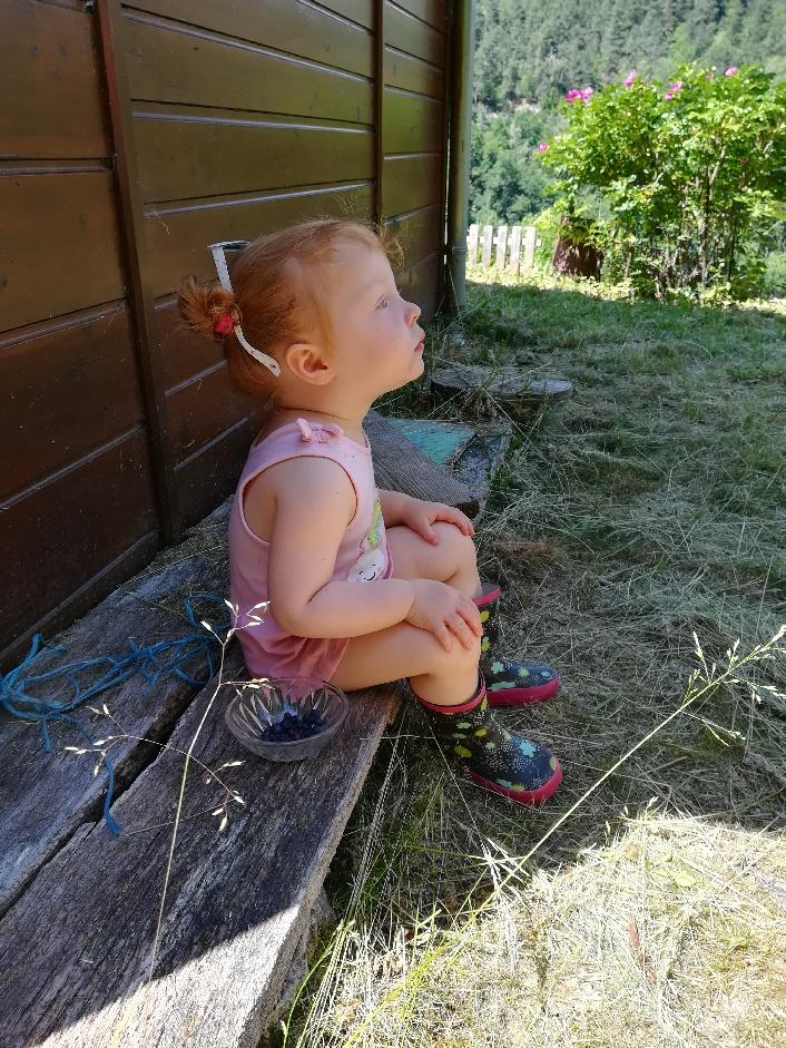 - C’est une vraie enfant de la forêt, elle est très douée pour cueillir les fruits sauvages et ramasser des pignes pour allumer le feu et elle commence à connaitre pas mal de noms d’arbres et de plantes. Dire qu’on est fiers est un doux euphémisme.