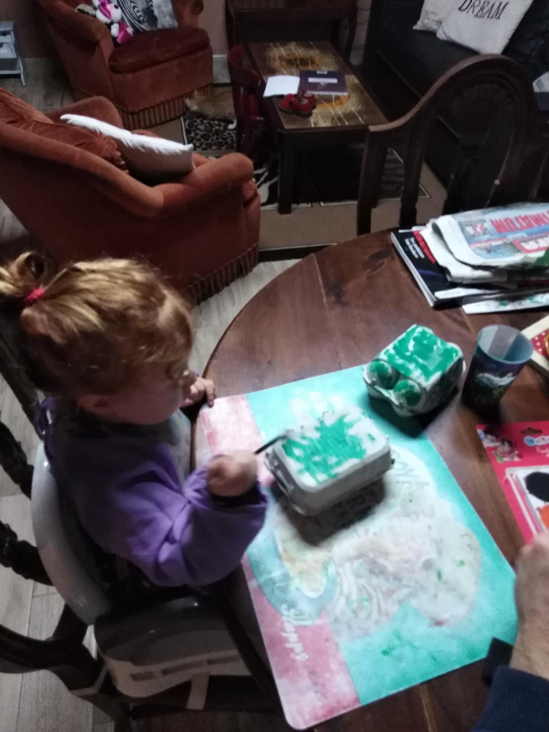 Comme à chaque vacances on a récupéré tous ses cahiers de « travail ». Maxine colle des gomettes, fait de la peinture, fabrique des sapins de Noel pour les oiseaux, parle comme un livre, colle des épines de sapin sur des dessins de hérisson, apprend des chansons, fait de la gym et compte jusqu’à 18. Mais par dessus tout, Maxine nous a fabriqué un calendrier avec la trace de sa main, un bonhomme de neige, des paillettes et des gomettes et c’est le plus beau calendrier que j’ai vu de toute ma vie.
