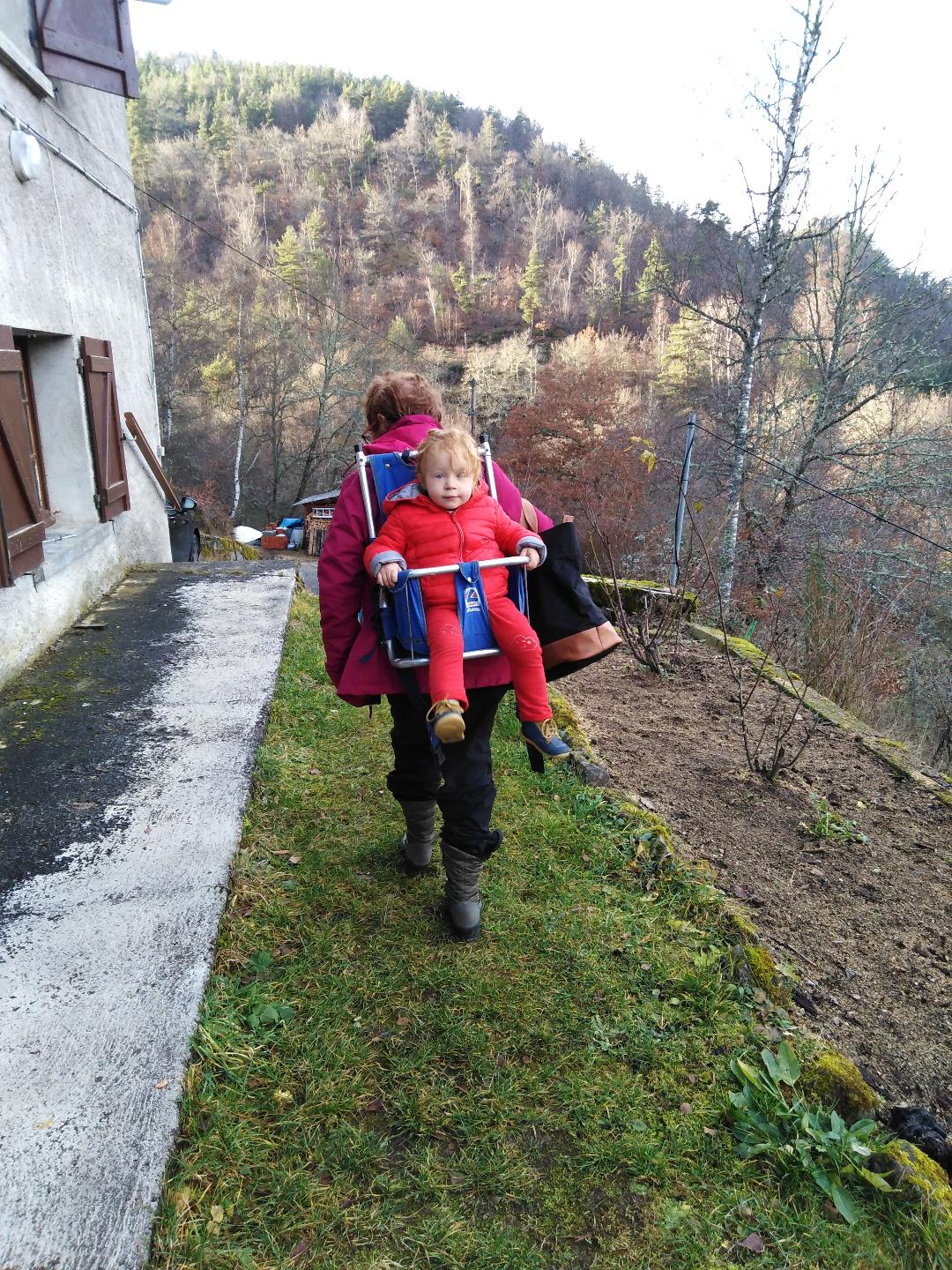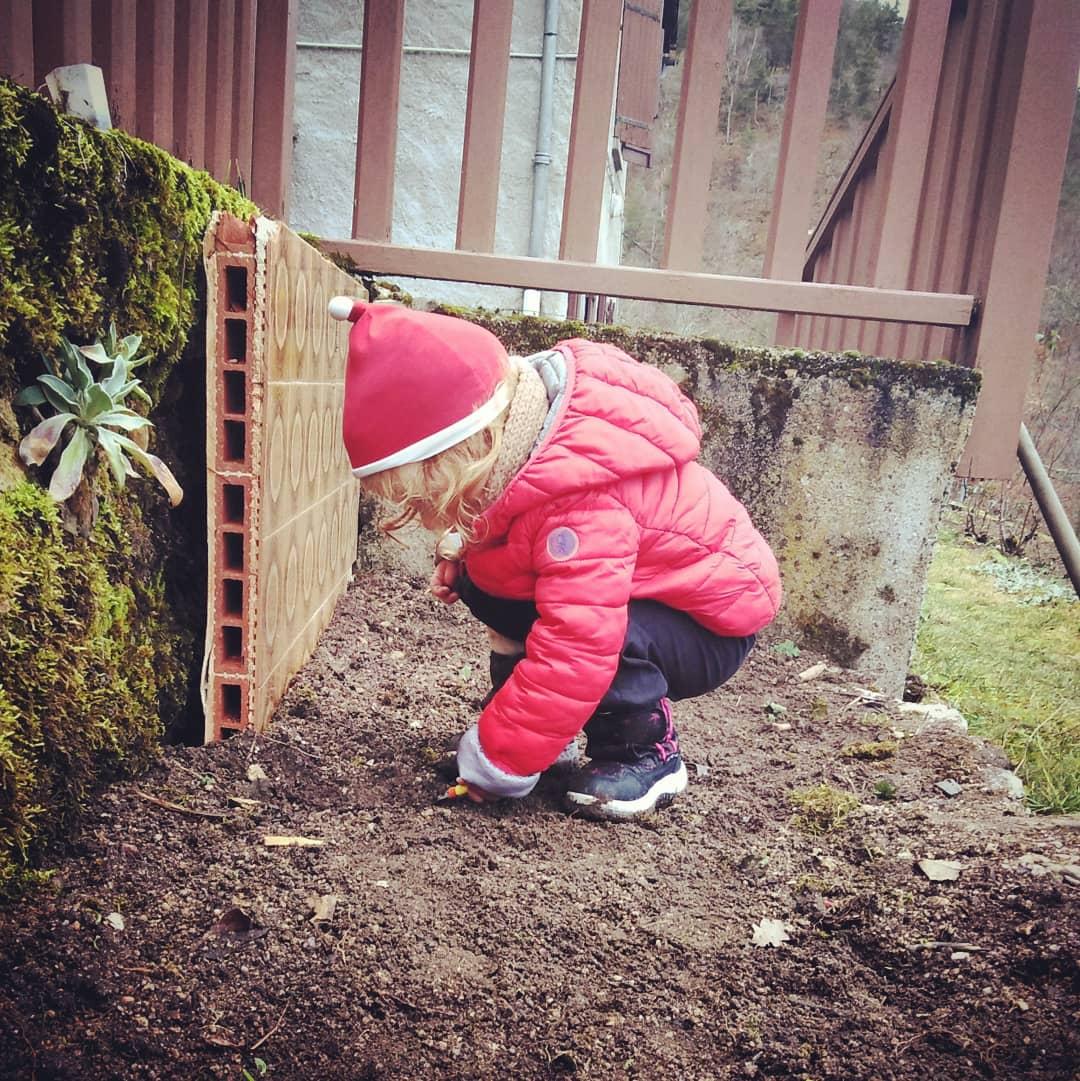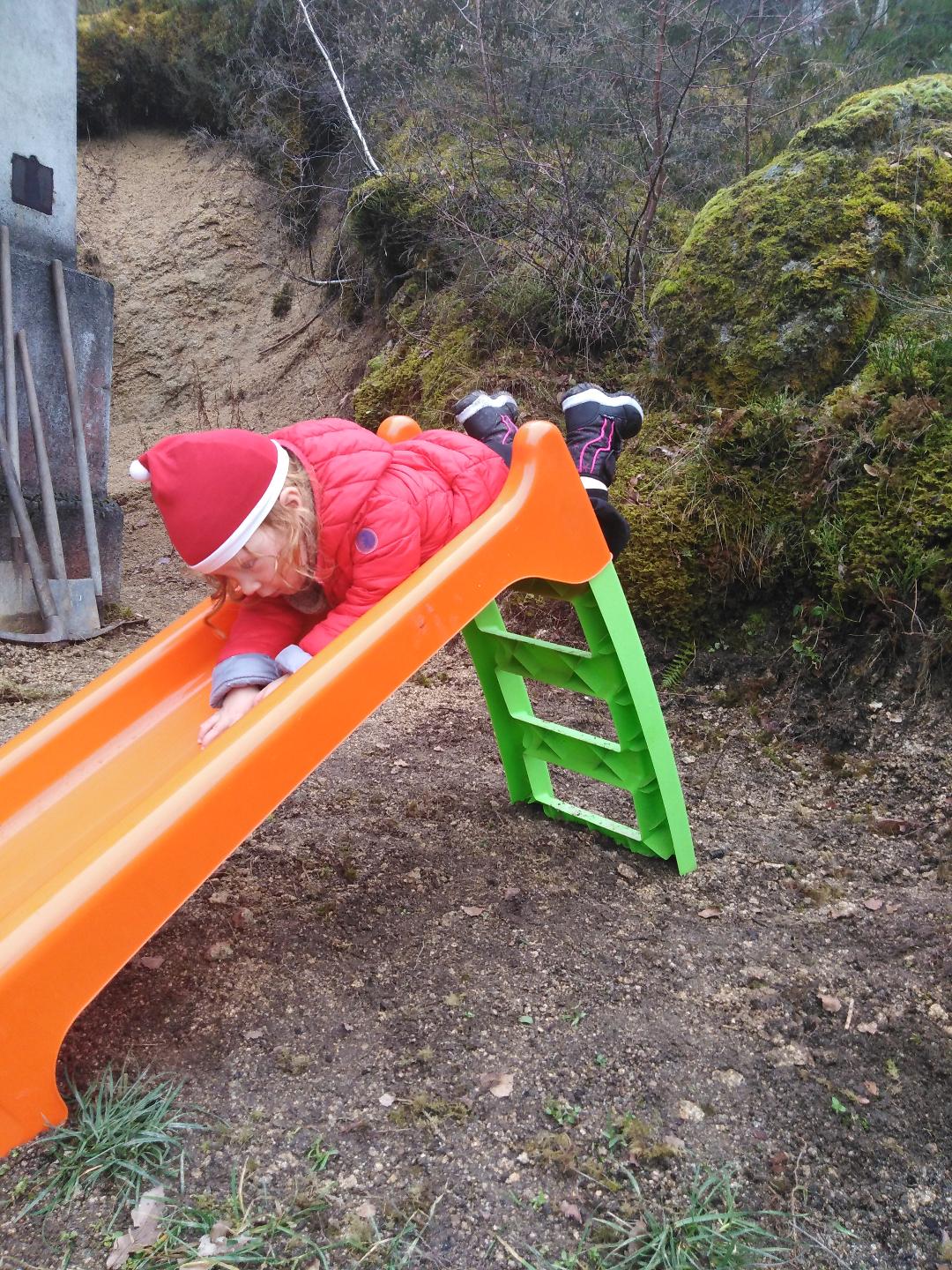 Pendant que Maxine était à la sieste on a reçu nos cheminées électriques (des radiateurs électriques mais en forme de cheminée, vachement plus classe) et j’ai passé 30 minutes à sauter partout comme un petit lutin quand elles ont été installées parce que c’est vraiment trop joli. Et accessoirement ça permet de gagner quelques degrés très rapidement en cas de grand froid, c’est le top. Après j’ai décidé de me lancer dans la réparation de mon fauteuil dont le galon à franges est décousu depuis des plombes. J’ai galéré et je me suis tellement piqué les doigts qu’à la fin on aurait dit des mini passoires mais j’ai réussi. J’étais hyper fière. Puis les chats sont rentrés et ont tout détruit en deux minutes. Je me suis demandé si on pouvait bouffer du chat à Noël. Après la sieste Arnaud a continué l’isolation de la chambre de Maxine et moi j’ai continué à essayer d’avoir un poulailler étanche en rajoutant des tôles de partout. Spoiler: ça a pas marché. Non seulement mon poulailler ressemble à un bidon ville mais en plus les poules sont encore et toujours sur la terrasse. Pour me détendre j’ai cassé des cailloux à coup de pioche pendant que Maxine faisait du toboggan et des verrines « terre/mousse » dans le jardin. Avec son bonnet bien entendu.