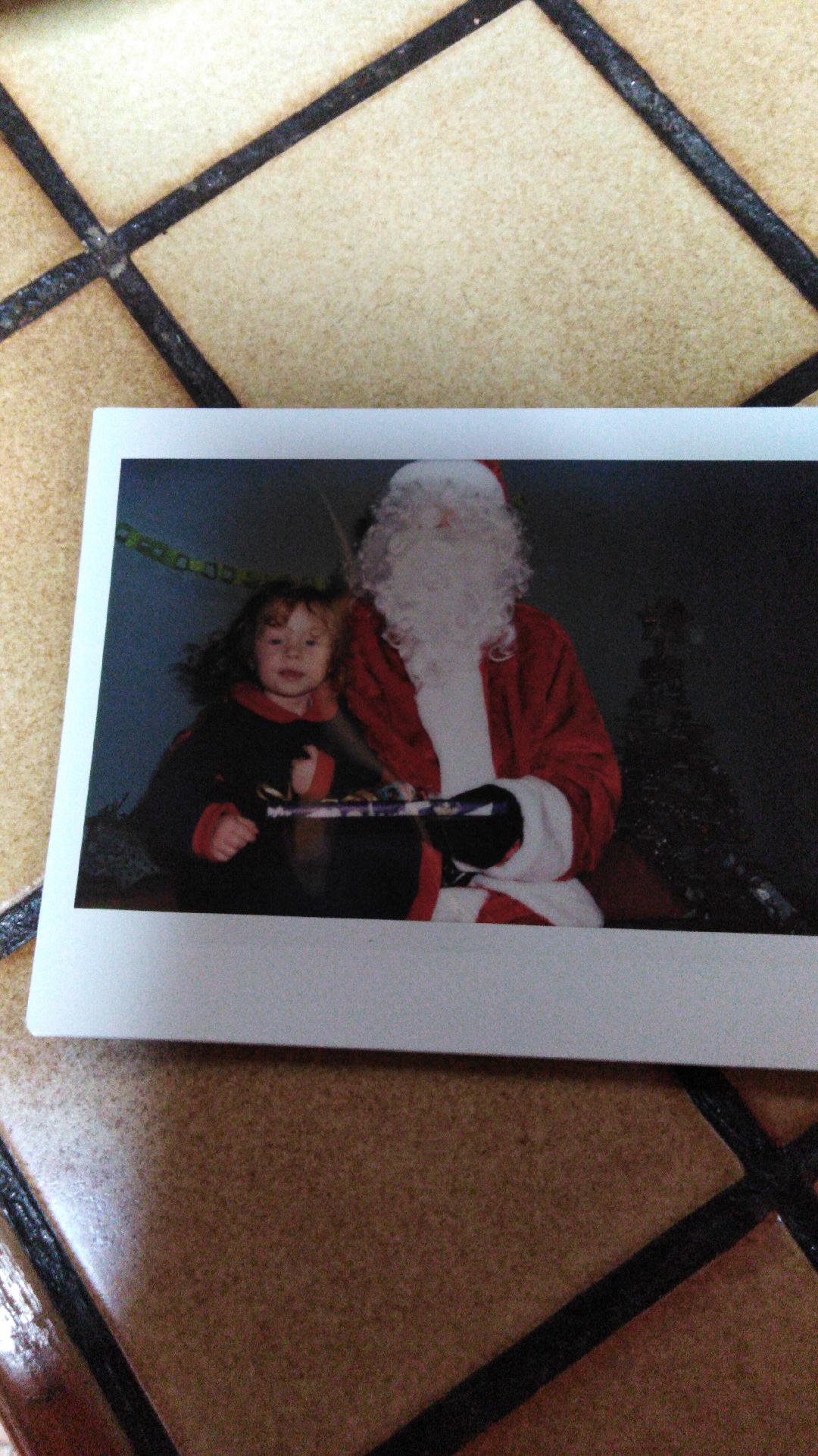 Quand j’ai été la chercher à l’école ce soir elle pleurait devant le portail… Parce que le père Noël était parti. Mais sinon d’après la maîtresse ça s’est très bien passé, elle a été la première a lui sauter dessus pour lui faire un bisou. Et pour cacher le masque il avait beaucoup de cheveux et beaucoup de barbe et Maxine lui a dit « qu’il fallait se coiffer quand même »!