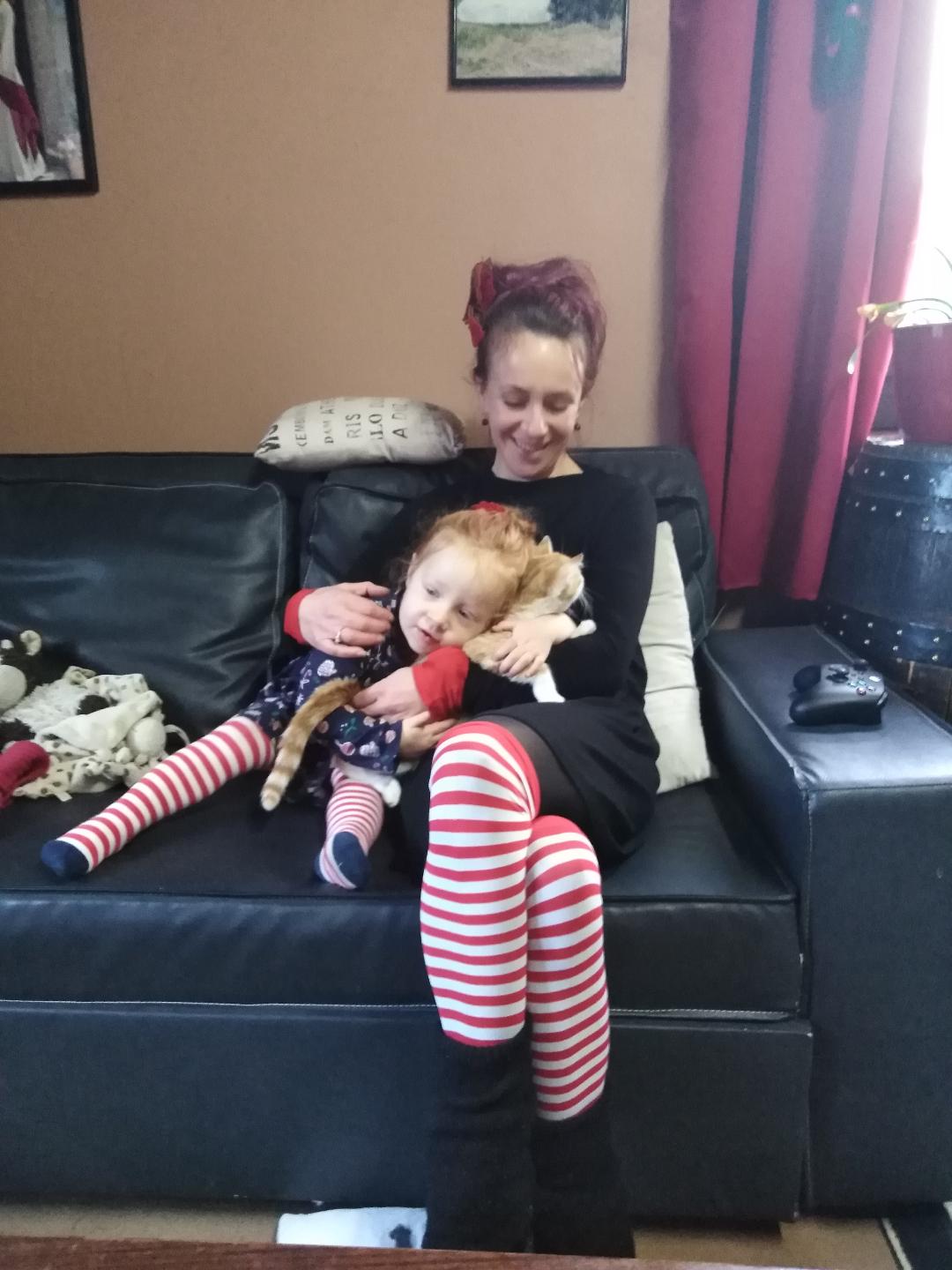 Quand, en regardant le dessin animé elle m’a dit « Je veux voir Margu sur la neige », que j’ai avancé jusqu’à la scène et qu’elle s’est mise à faire des « youhou » en même temps que la petite fille dans la télé j’étais au top de ma vie. Et du coup je n’ai toujours pas trouvé de mots pour décrire mon état quand le chat nous a rejoint et que Maxine l’a pris sur ses genoux en lui disant « viens Croquette, on fait un câlin de Noël ».