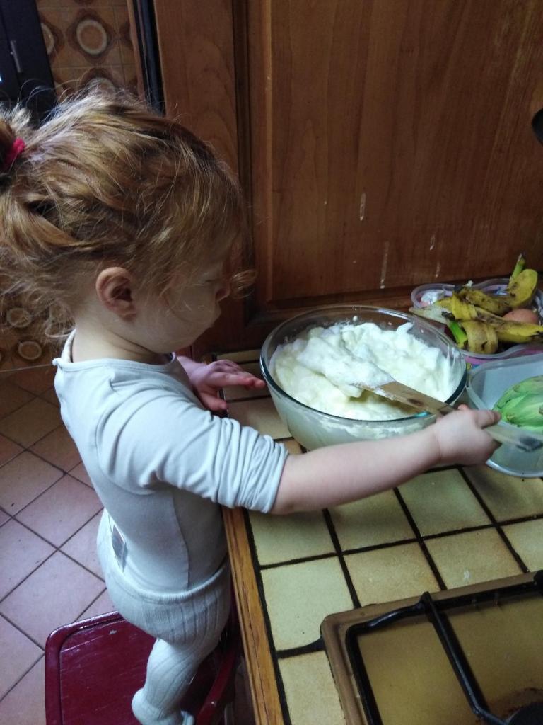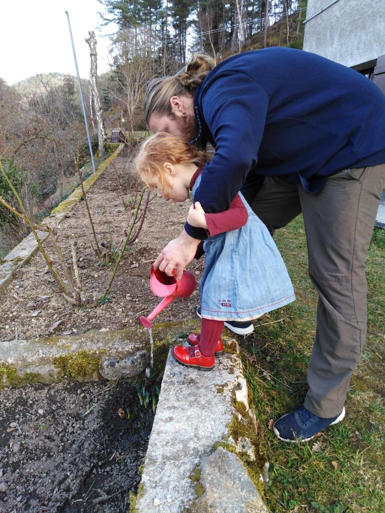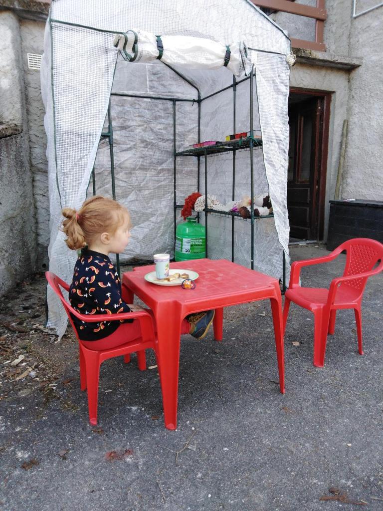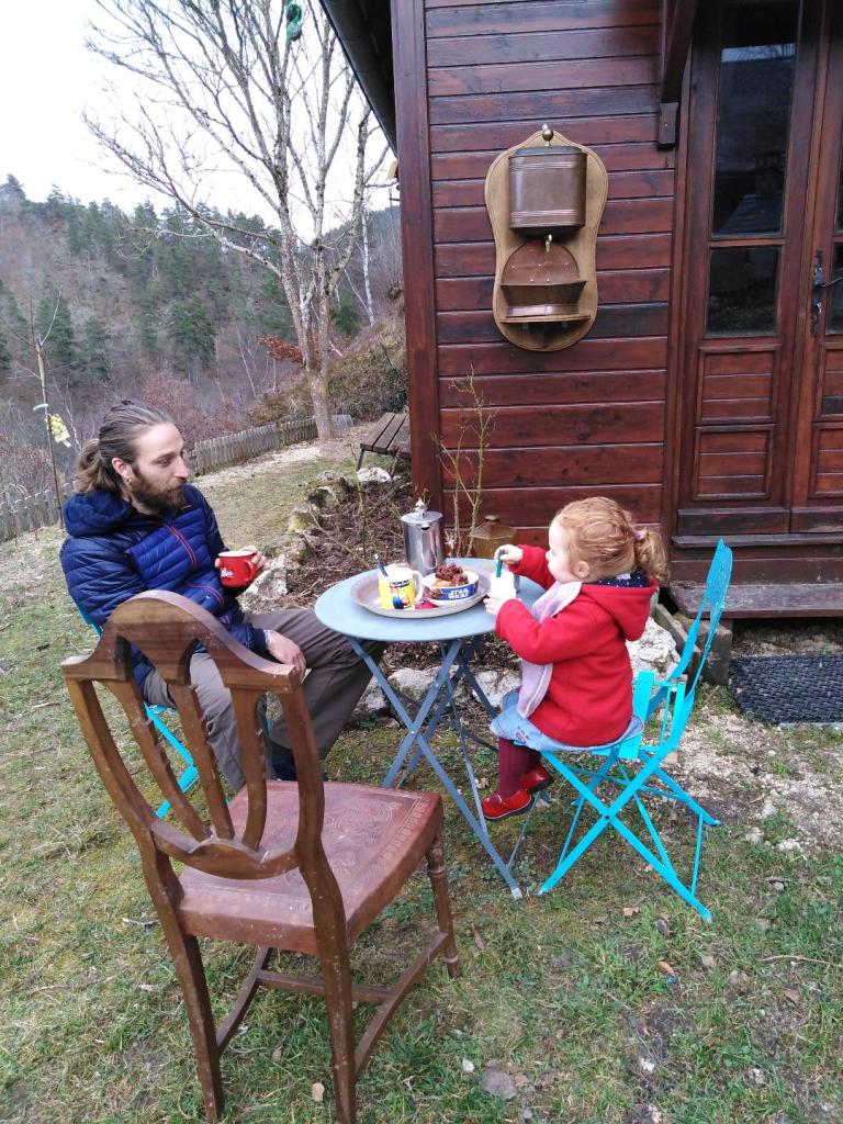 Pour nous, éduquer notre fille dans la résilience et la décroissance c’est, avant tout, lui montrer qu’on a rien sans rien, à commencer par une maison chaude. Du coup on explique, beaucoup et absolument tout ce qu’on fait, et elle participe. Même si des fois c’est juste en nous tenant compagnie et en nous chantant des chansons. Au moins elle voit que tout a un prix et que rien ne tombe tout cuit.