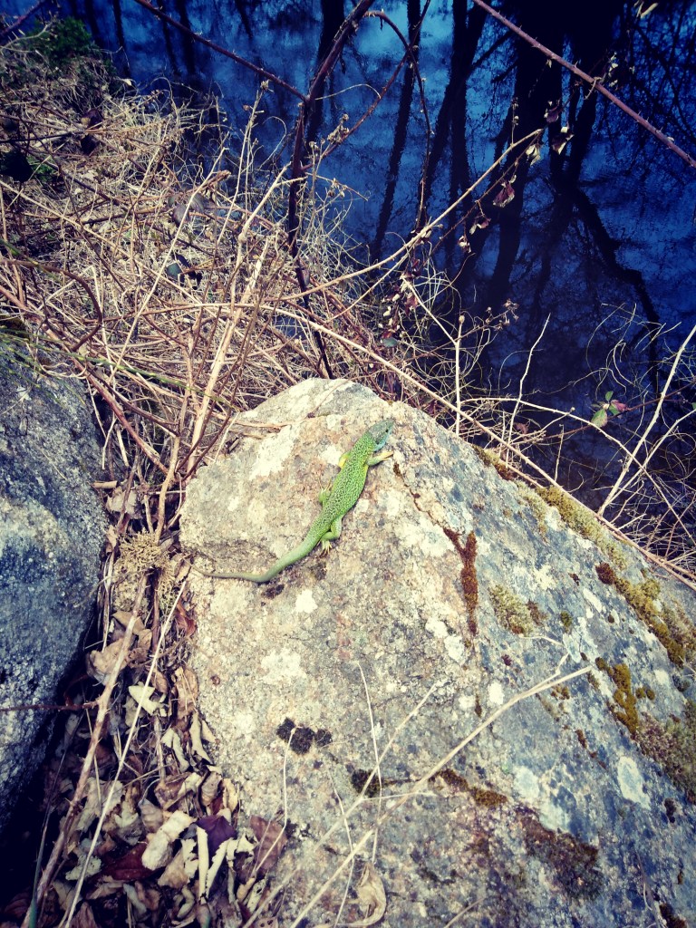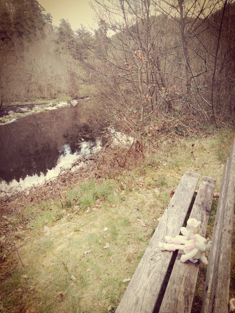 Après on a été se promener au bord de la rivière et pendant qu’elle jouait « au macdo » (à mon plus grand désespoir) j’ai ramassé plein de framboisiers pour les repiquer dans le jardin.
