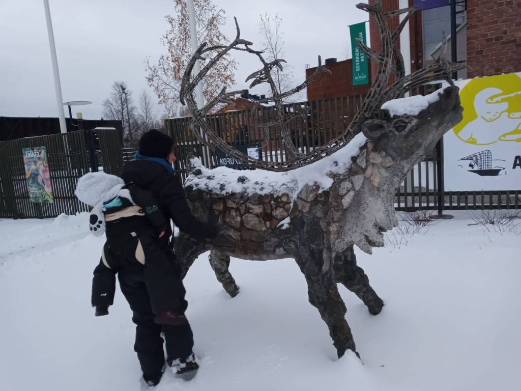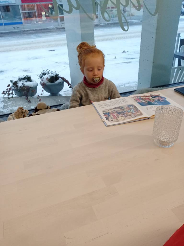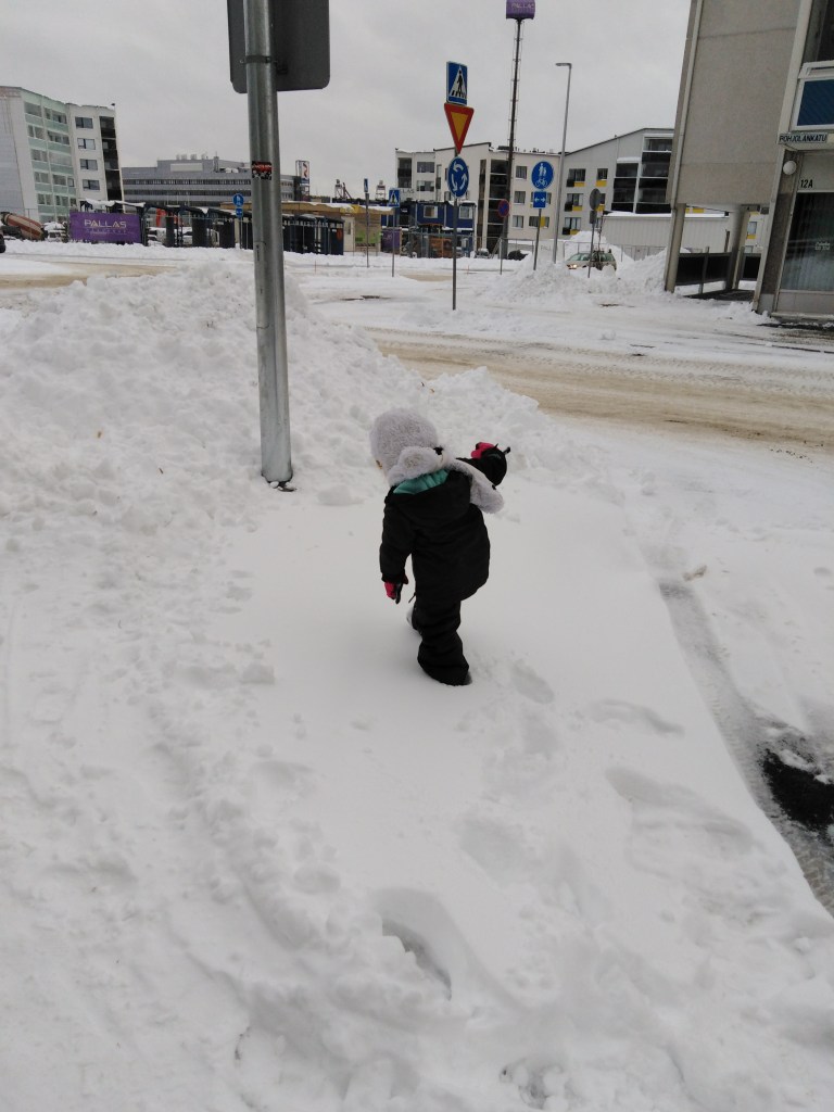 Au bout d’un moment j’ai eu un doute sur l’itinéraire. J’ai demandé à un monsieur qui promenait son chien si il parlait anglais. Il m’a répondu « pas trop ». Je lui ai demandé si il connaissait l’adresse que je cherchais en lui montrant la capture d’écran sur mon téléphone parce que j’étais absolument incapable de le prononcer. Il m’a répondu, dans un anglais absolument parfait, que oui, et qu’il allait nous accompagner. J’aurais voulu lui faire un câlin mais je ne m’étais pas plus renseigné sur les traditions Finlandaises depuis la gare d’Helsinki, mon sac devant me gênait et Maxine hurlait sur le trottoir « Je veuuuuuuuuuux paaaaaaaaaaaas que mamaaaaaaaaaaan parle anglaiiiiiiiiiiiiiiiiis! ». Donc j’ai juste dis merci. Et on l’a suivi.