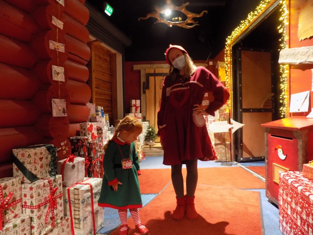 Le bureau de poste du Père Noël qui se trouve tout de suite à l’entrée était fermé pour cause de Covid. La bonne nouvelle c’est que ça a sauvé mon héritage parce que ma mère a une passion pour les cartes postales quand elle part en voyage et qu’au prix de la carte, du timbre ET du tampon spécial cercle polaire il ne serait pas resté grand chose en ressortant. La mauvaise c’est que du coup on a pas pu avoir notre certificat de traversée du cercle polaire. Ce qui n’est pas grave en soit. En plus si ça se trouve on nous l’aurait facturé aussi. Mais quand même ça aurait été sympa.