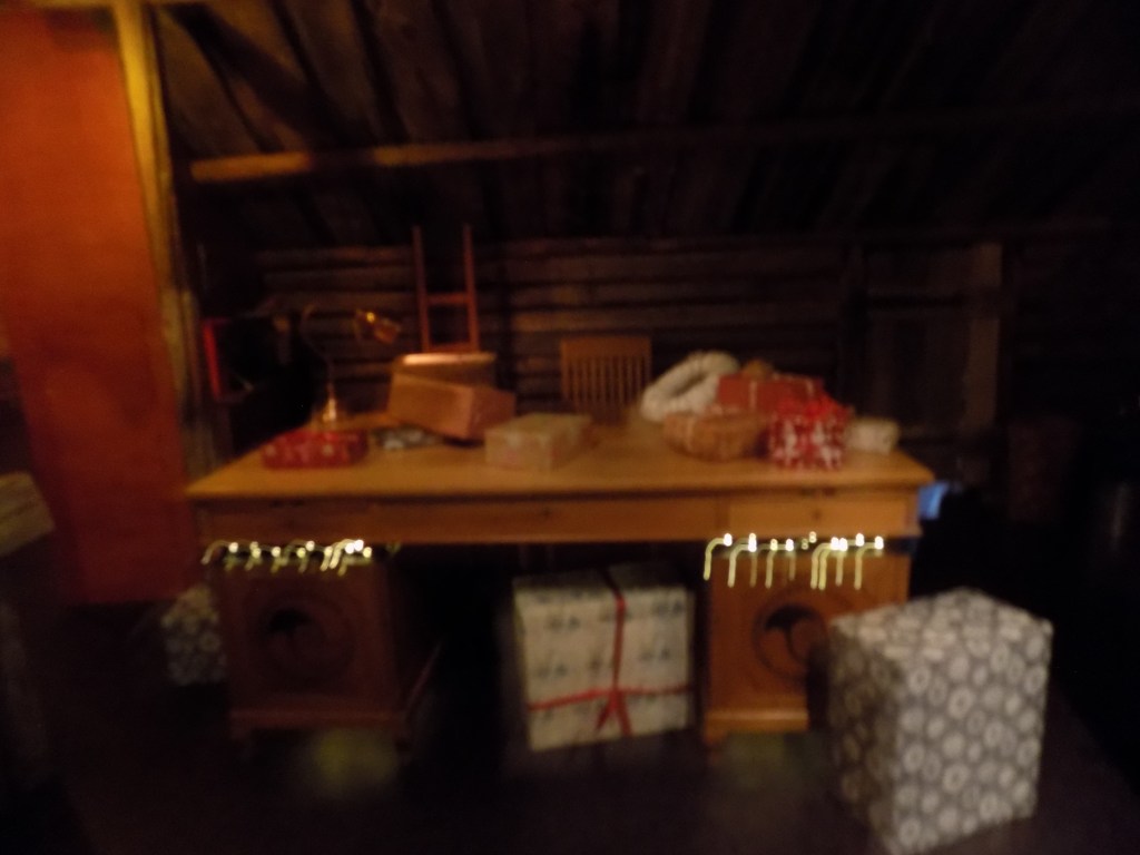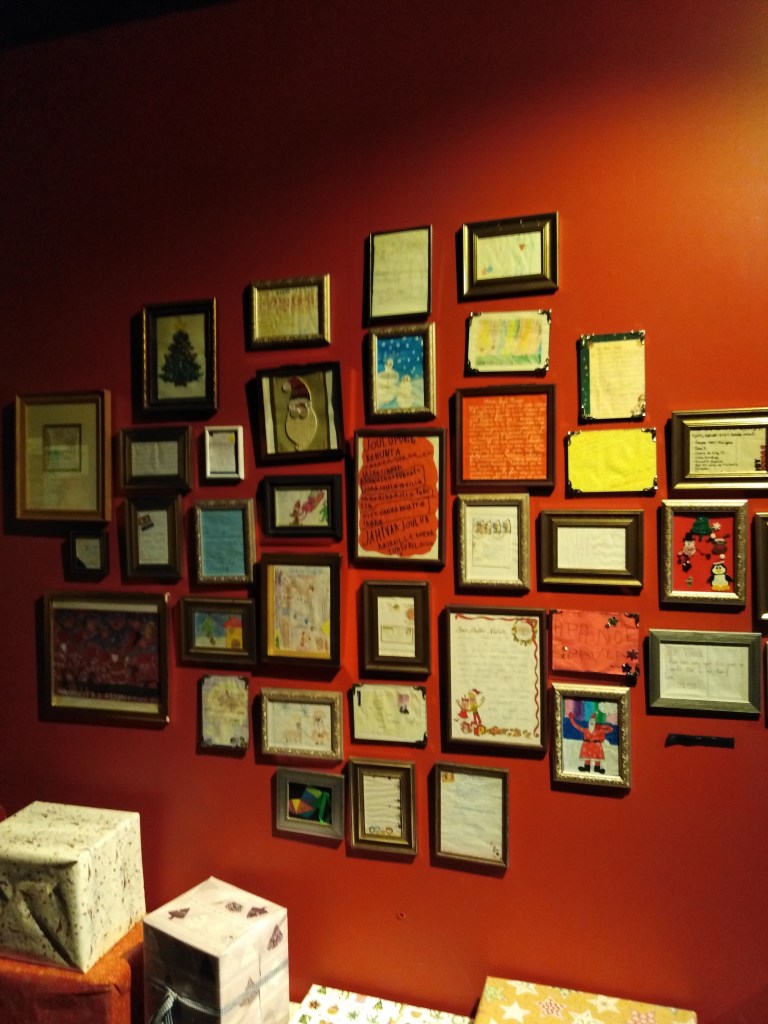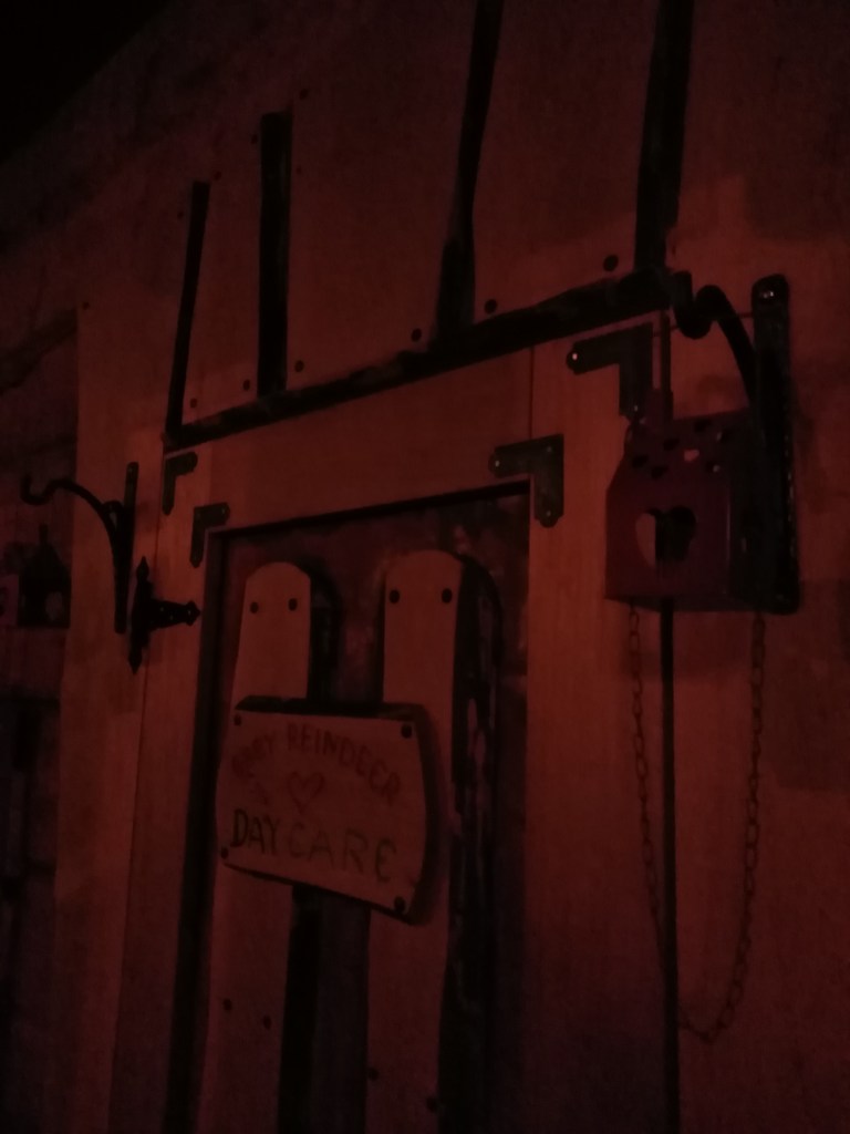 En vrai « l’aventure » c’est la file d’attente. Mais comme tous les trucs hyper touristiques c’est hyper bien fait. Donc en fait en faisant la queue tu passes devant le bureau du Père Noël, la machine qui arrête le temps pour qu’il fasse tout en une nuit, les ateliers des lutins, sa collection de lettres préférées, les photos de lui avec des gens connus… Il y a même des dizaines de portes avec des Judas dans lesquels tu vois la nursery des rennes, la fabrique des jouets, celle des biscuits et tout un tas de trucs trop kikis et rigolos.