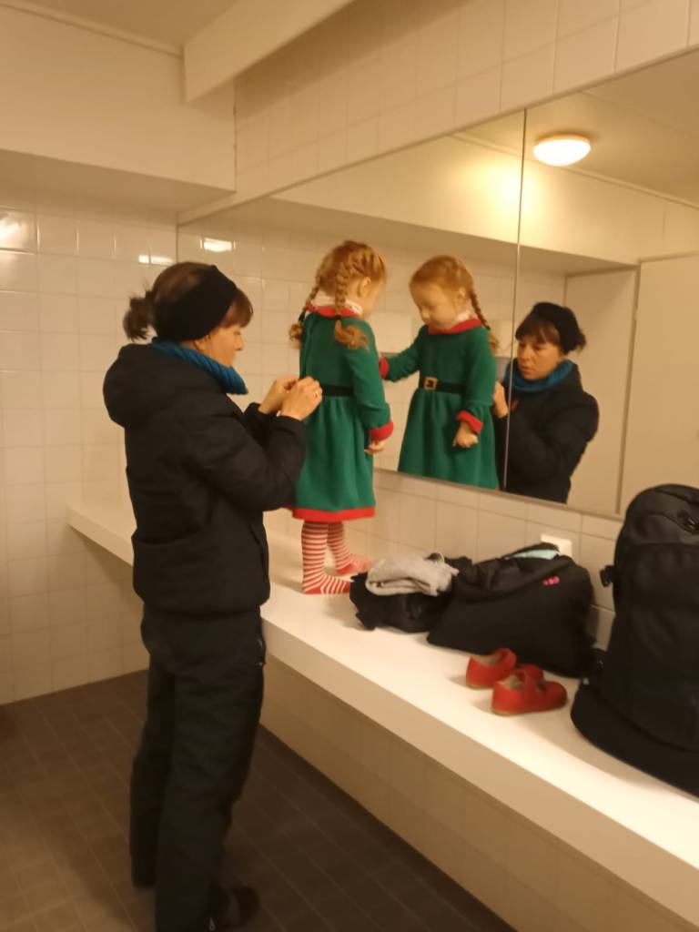 Je me suis quand même levée en mode lutin parce que, bon, on allait voir le père Noël.