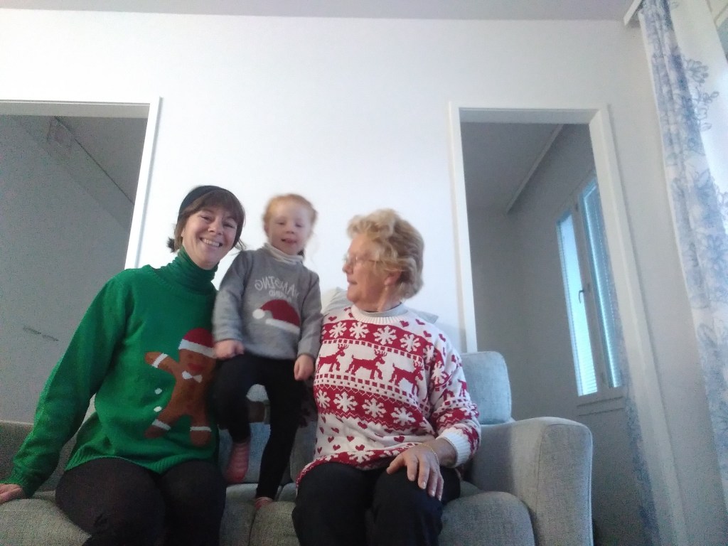 Encore après on a passé 20 minutes à essayer de prendre une photo où on était toutes les trois avec nos pulls bien en vue ET une tête potable. C’était pas évident.